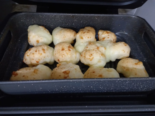 - Coloque em uma forma e leve para assar em forno pré-aquecido a 180°C por aproximadamente 35 minutos OU na airfryer pré-aquecida por 10 minutos.